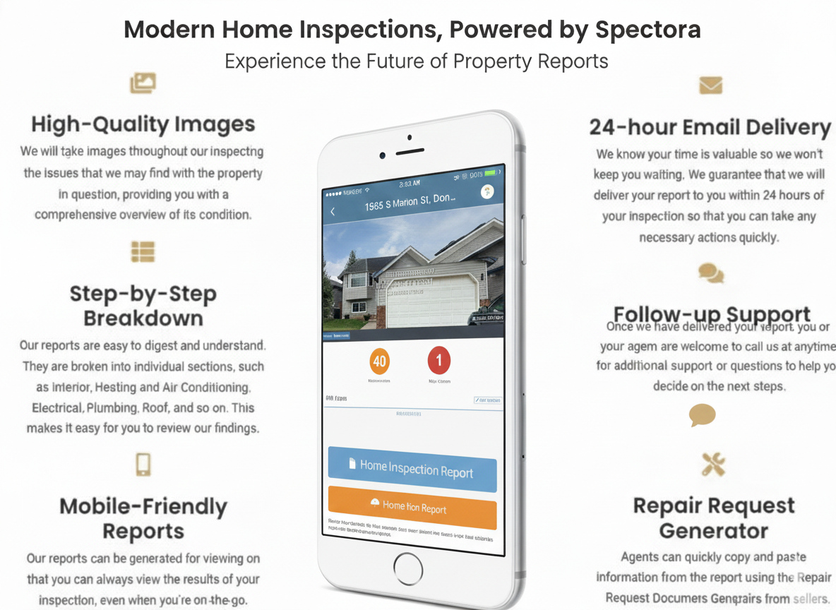 Regardless of whether or not you attend the inspection, we will compile a comprehensive Spectora report, which includes all of the information you need to determine the condition of the home.